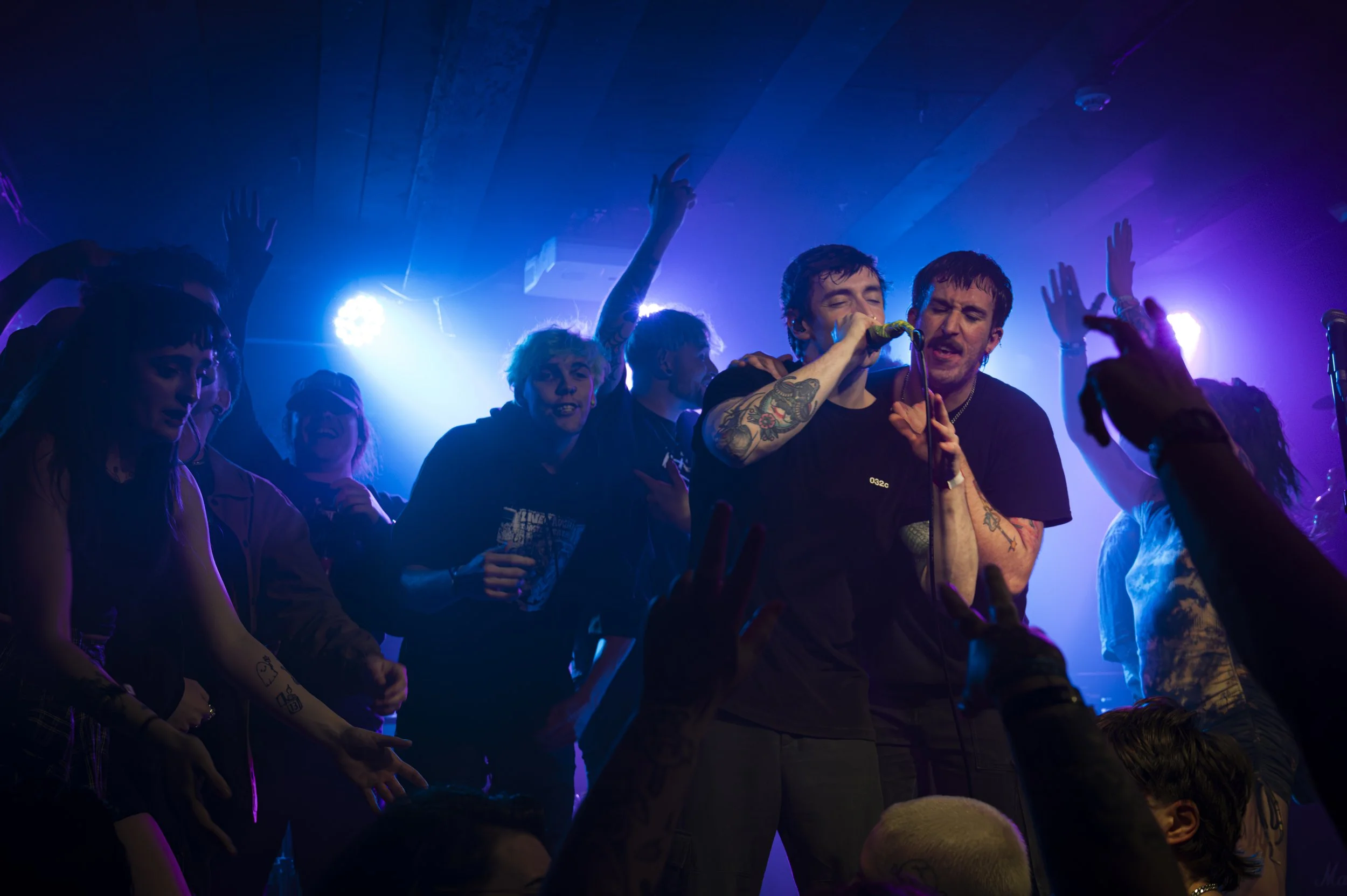 Waterlines followed, and after a fairly chaotic interview with them earlier in the day, expectations were… unpredictable, to say the least. What followed, though, completely blew past any of that, this was easily the standout set of the entire festival. From the moment they hit the stage, everything felt unhinged in the best possible way: chaotic, cheeky, and bursting with energy that never once dipped. The crowd responded instantly, with mosh pits breaking out and a constant sense of movement that carried through the whole set. They were just as impressive musically, tight, dynamic, and packed with moments that hit just as hard live as they did in spirit. Frontman Ben Mars was a force of nature, completely commanding the stage with a presence that felt larger than the room itself. One of the most memorable moments came when they had the entire crowd link arms and jump side to side in unison, one of those rare, perfectly executed live moments that sticks with you long after the set ends. It wasn’t just fun, it was unforgettable, and a clear reminder of how powerful a live performance can be when everything clicks.