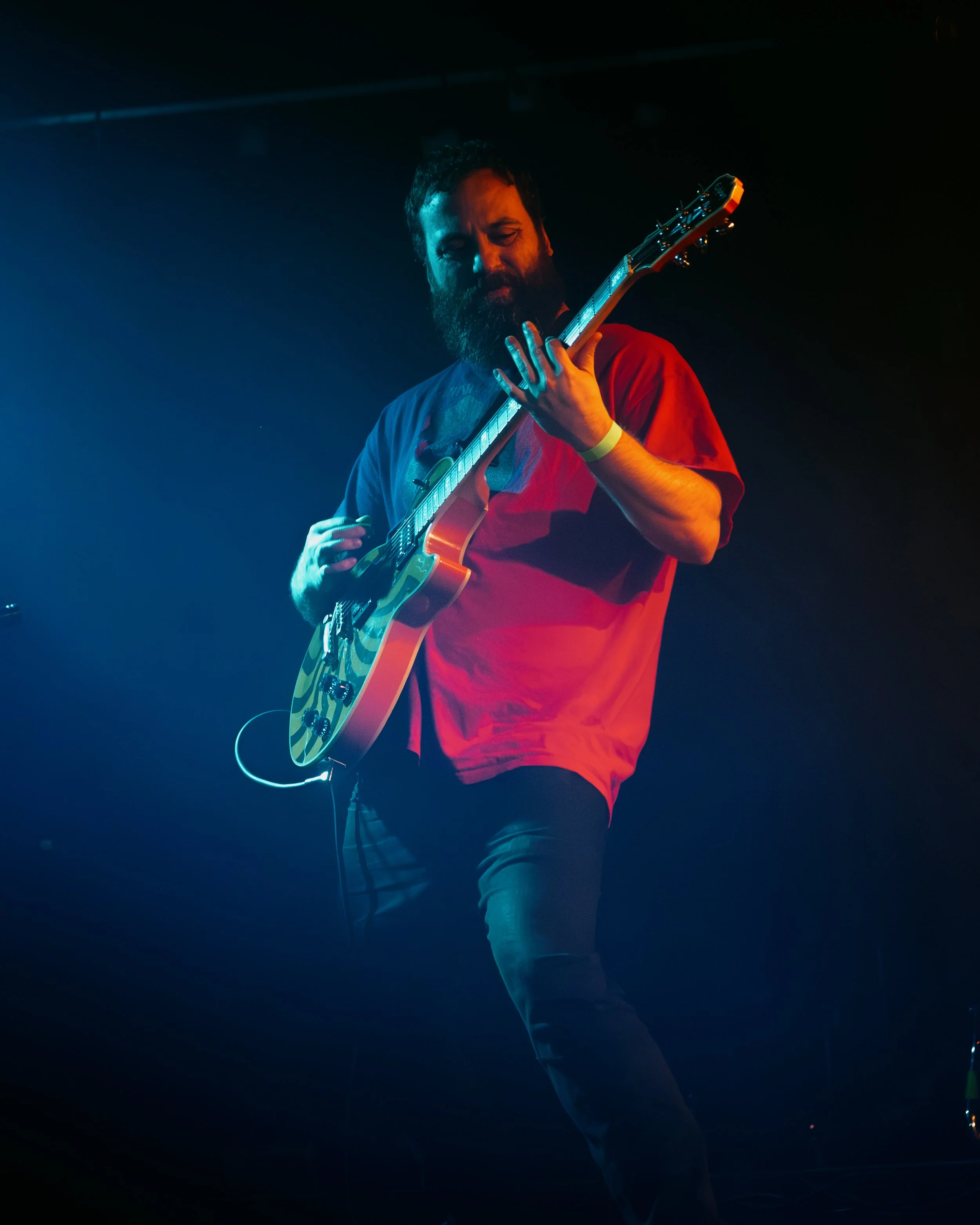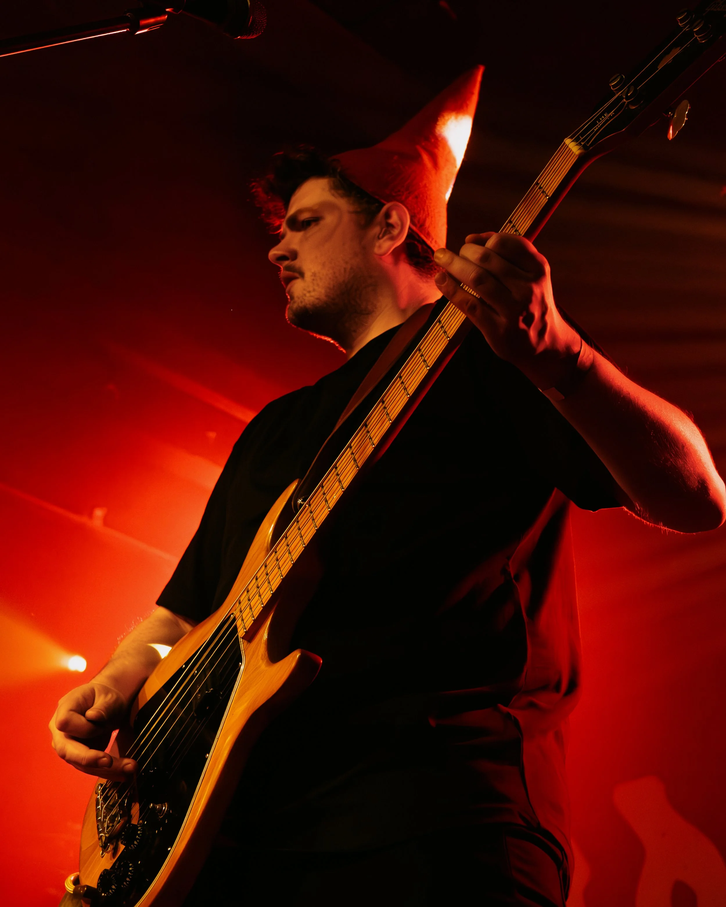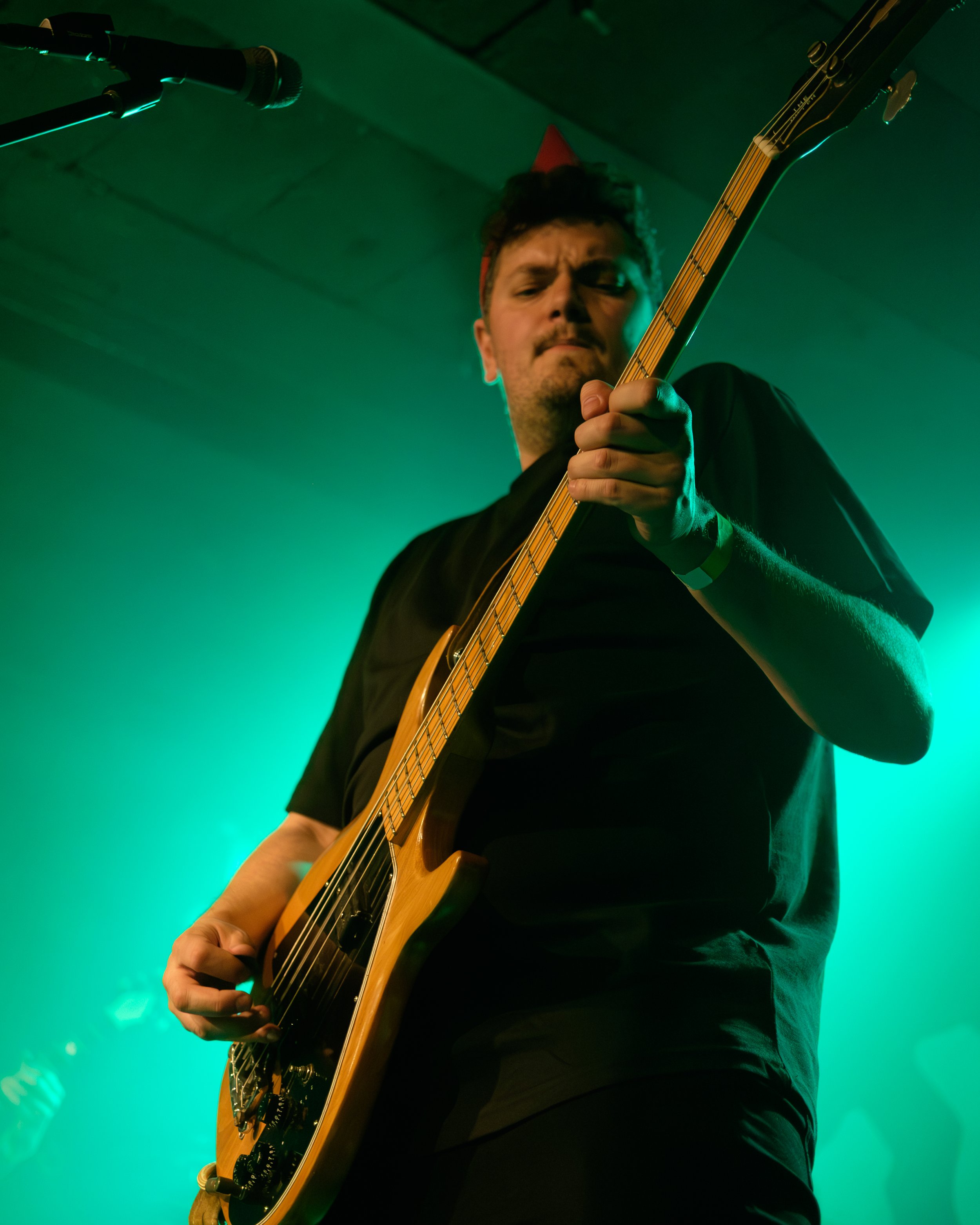 Enter Gnome. No dramatic build-up, no drawn-out intro. Just three figures, a flash of red hats and then impact. For a band that leans into absurdity, Gnome are devastatingly tight live. Every groove hits with precision, every tempo shift deliberate even when it sounds like everything might derail. That push and pull makes them addictive to watch. One minute you’re buried in cavernous riffs and chest-rattling basslines; the next, the band toss out surreal banter or lean into the ridiculousness of it all. You come for the novelty, and before long you’re completely locked in.