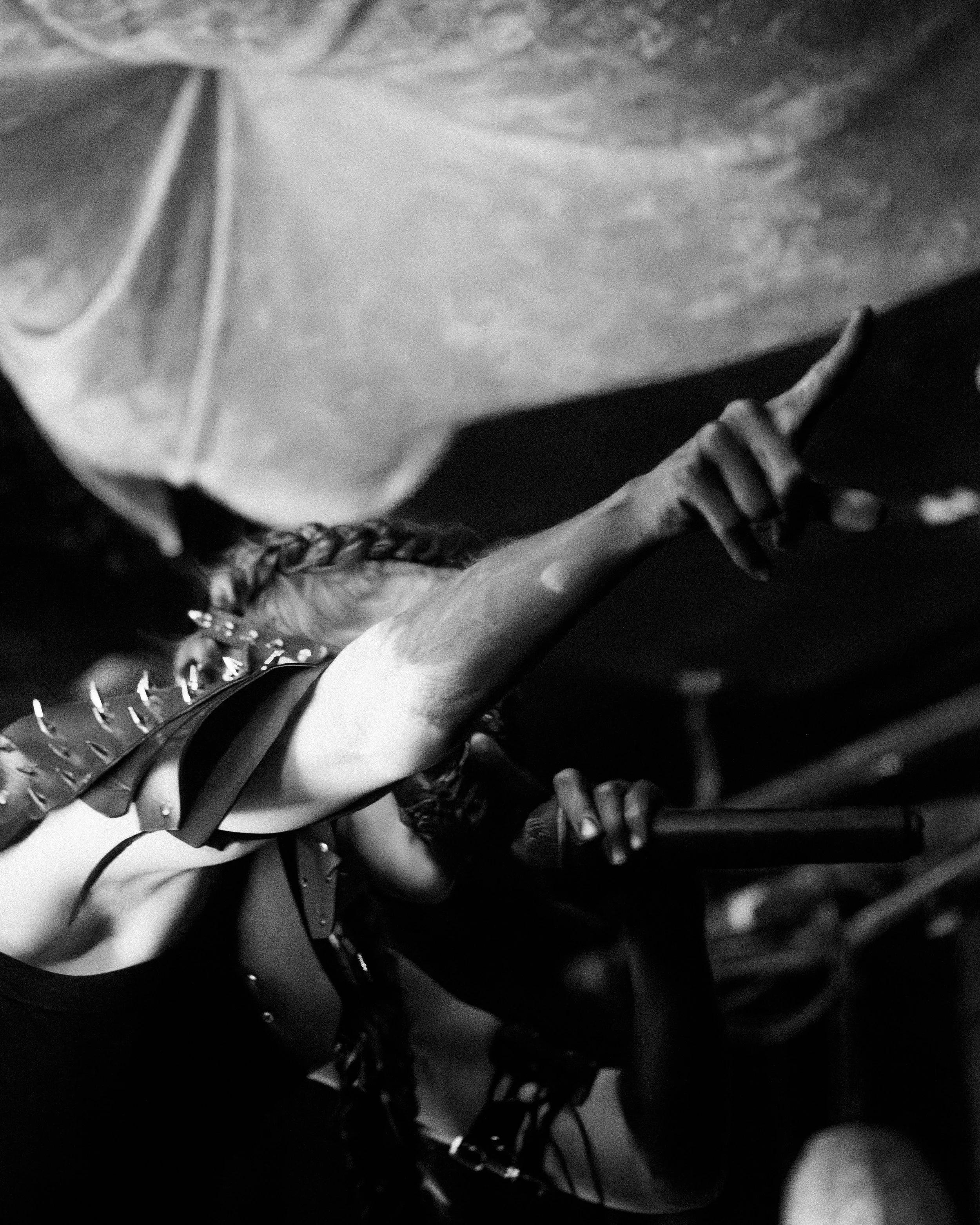 Wearing her signature gothic style with futuristic touches, n0trixx moved with fierce grace, commanding the stage alongside her guitarist and a mix of atmospheric sound effects. Her music, a bold fusion of metal, trap and synth elements, pulsed with unique energy, letting the audience feel the power behind every lyric, even through her black face mask. The result was a show as intense as the red light that drenched the venue throughout the night.