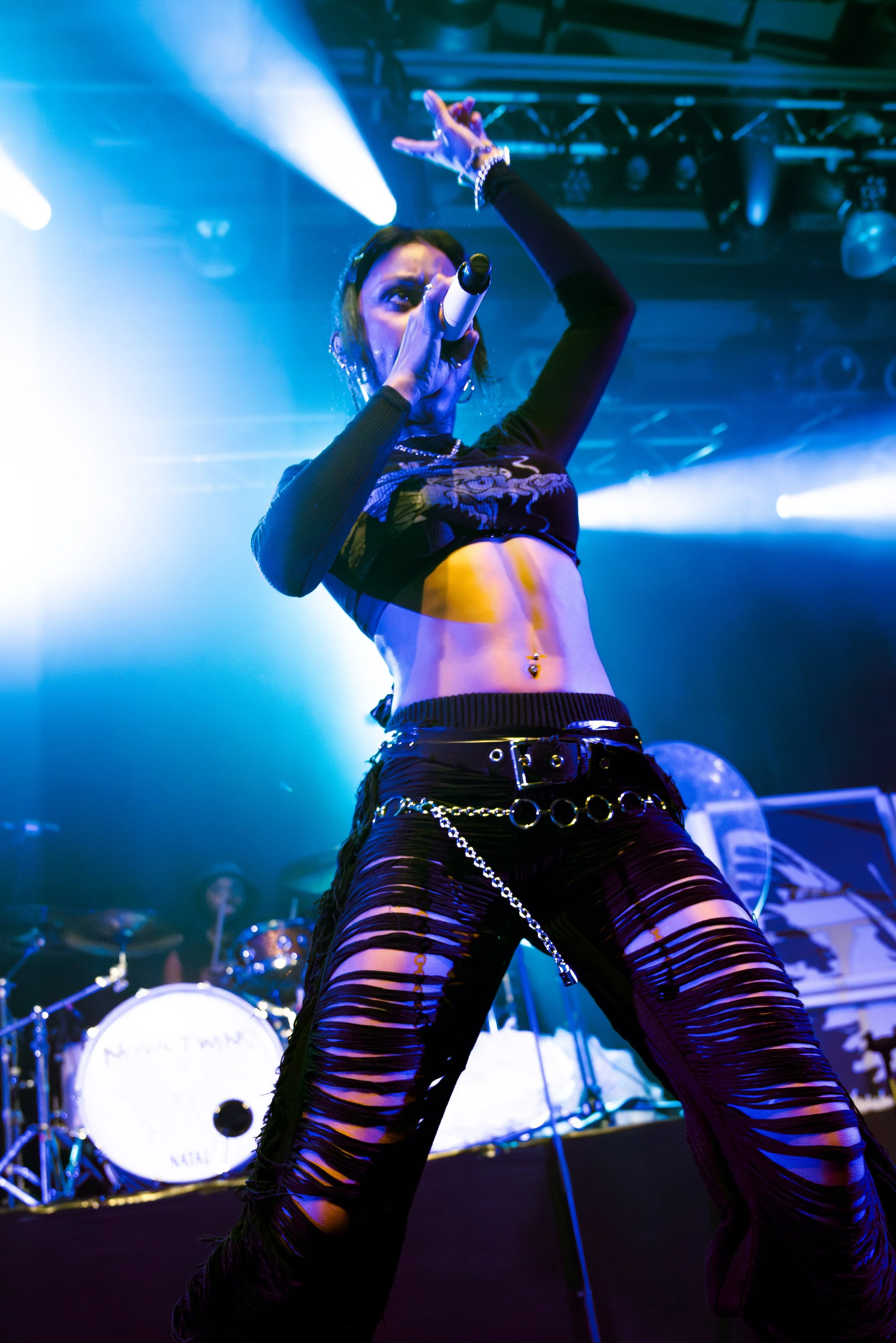 Support was the alternative rap artist Native James who took to the stage with the track ‘Raise The Alarm’, bridging the gap between metal and hip-hop effortlessly. With his band, he performed several more songs from his recent EP ‘Confessions of a sinner’, which was released in October 2025, such as ‘Fallen’ and ‘GTFU’. The singer asked the crowd to repeat the line “Do what you want, do what you want” after him as practice for the next track. “This song is called ‘Do What You Want’”, he quipped, “Surprise!” This led to a round of laughter from the attentive crowd. Native James captivated with his energetic stage presence and intricate lyrics during his eight-track setlist, firing up the concert hall at Zeche Carl for headliners Nova Twins.