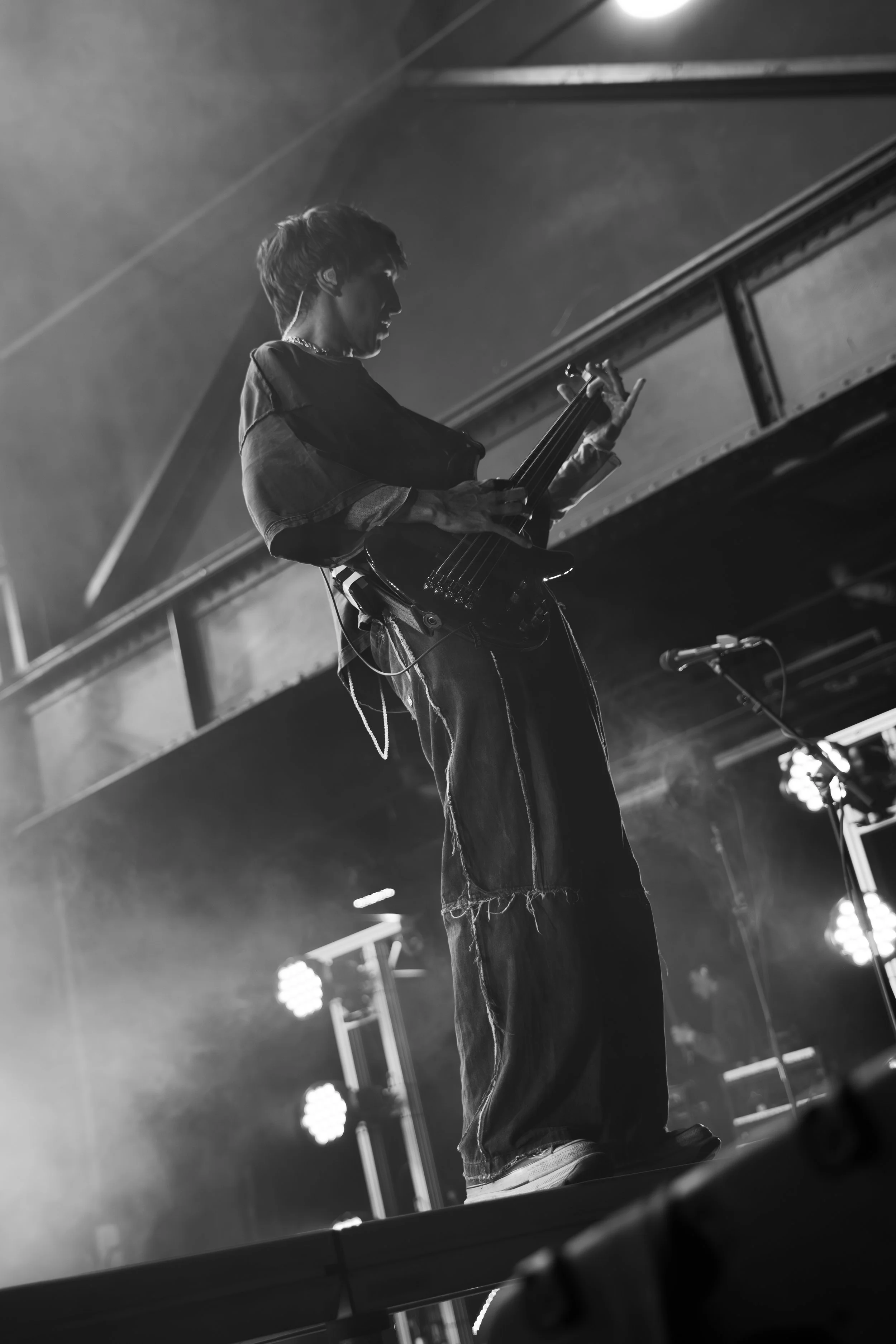 Eyes following their every move, the crowd sang their hearts out on tracks such as the gloomy ‘Kafka’. Tracks might be the wrong word here, as each reminds more of full compositions than just mere songs. Fitting the dramatics of any fantasy film score, Shmayluk is both the princess and the dragon. Softness contradicts aggression. It’s letting go of emotional sorrows at its purest and best, both for the crowd and the band.