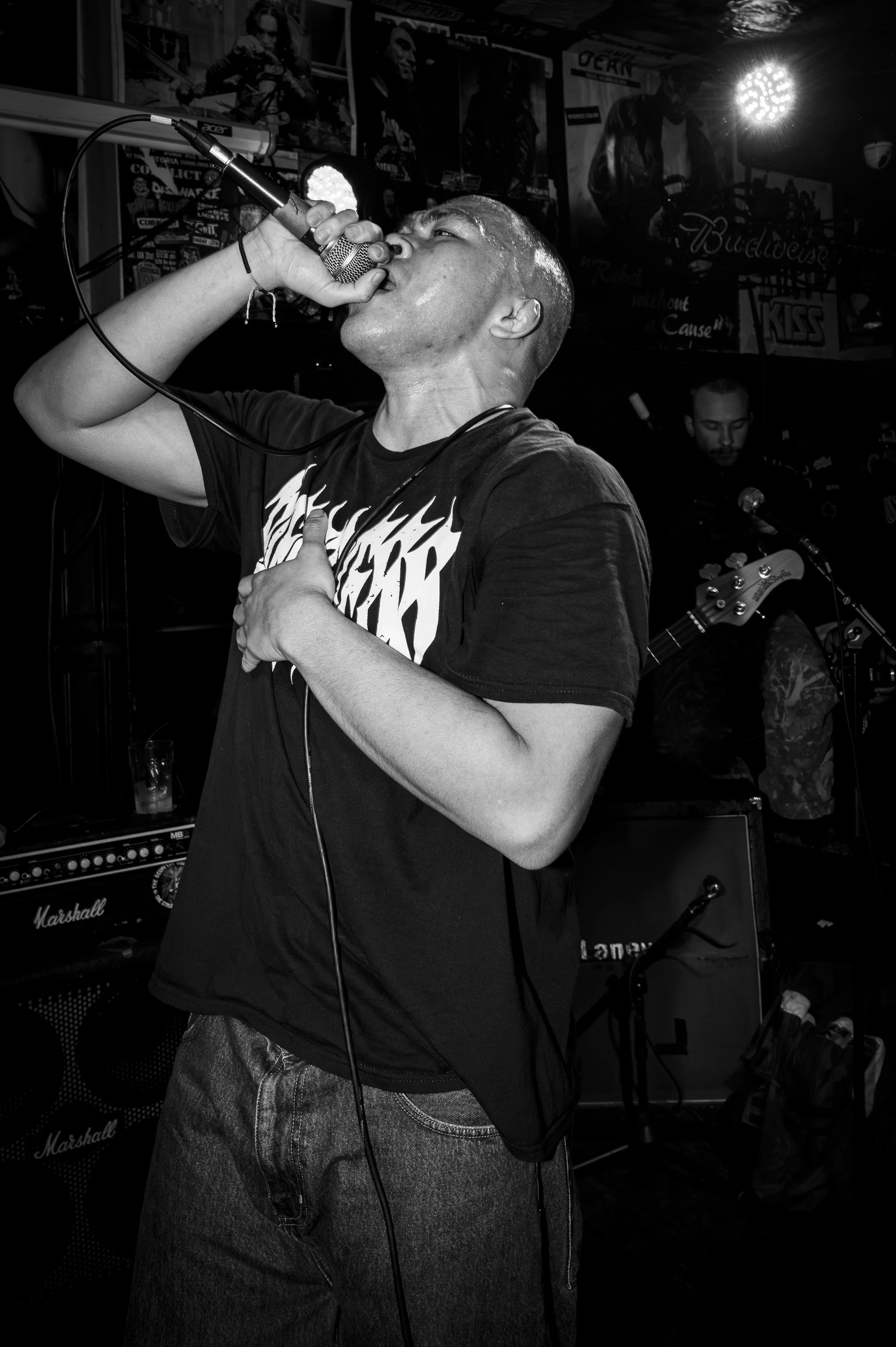 State Sanctioned Violence opened up the night with wailing feedback and pounding drums before slamming into their first song, ‘Permanent Warfare’, the opening track off their self-titled EP. Their combination of crust punk intensity and ’88-era Metallica riffs makes State Sanctioned Violence the perfect opener; a ravenous audience erupts into chaos at every two-step riff and D-beat, desperately reaching for frontman Owen’s microphone as he bounds and contorts across the stage. The between-song chat and lyrics are heavily politicised, with one of the final songs of the set seeing Owen screaming, “You build a wasteland, then you call it peace”, into the faces of the audience before leaping down from the stage to join them in the chaos.